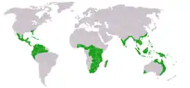 Естественный ареал этого рода — Азия (от Индии до Японии), Индонезия, Австралия, тихоокеанские острова (Марианские, Фиджи, Самоа), а также Мадагаскар.