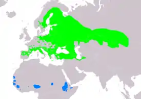 ![]() Только гнездится Районы миграции |