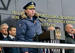 | В Рязанском ВВДКУ. 2014 год | С командующим ВДВ В. Шамановым, 2014 год | Во время рабочей поездки. Иваново, 2014 год | В десантно-штурмовой бригаде ВДВ, Камышин, 2014 год |
