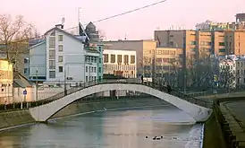 Построен в 1963 году по проекту инженера Н. Д. Брагиной и архитекторов В. А. Корчагина и К. П. Савельева. В том же году был перестроен Чугунный мост, по Комиссариатскому мосту пущено трамвайное движение, а двумя годами позже был выстроен и Шлюзовой мост.