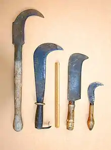В России аналогом садового секача является разновидность косаря с серповидным клинком.