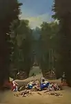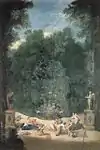| Боскет «Зал Балов», современный вид. | Колоннада и статуя «Похищение Персефоны» | Грот Аполлона, современный вид | Бассейн Аполлона — Фонтан Аполлона, современный вид | «Версаль, Сад Короля» работа Раймундо де Мадрасо и Гарреты, 1914—1920, холст, масло, 17 x 30 см, Музей Ламбине |