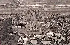 Начиная с этого времени, расширения садов и расширения дворца в Версале следовали друг за другом. Конечно же, строительные кампании Людовика XIV распространялись также и на сады.[7]