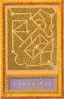 Первоначально, в 1665 году Андре Ленотр спланировал лабиринт невзрачных тропинок на участке к югу от Фонтана Латоны, возле Оранжереи. (Loach, 1985) В 1669 году Шарль Перро — ныне известный, в основном, как автор Сказок матушки Гусыни — посоветовал Людовику XIV перестроить Лабиринт таким образом, чтобы он способствовал образованию Дофина (Perrault, 1669).[36] В период между 1672 и 1677 годами Ленотр перепланировал Лабиринт, разместив на каждом из пересечений аллей 39 фонтанов, представляющих эпизоды басен Эзопа. Над этими 39 фонтанами трудились скульпторы Жан-Батист Тюби, Этьен Ле Онгр, Пьер Ле Гро (старший) и братья Марси. К каждому фонтану прилагалась табличка с тиснением текста басни и куплета стихов руки придворного поэта Бенсерада; по этим табличкам сын Людовика XIV учился чтению. После своего завершения в 1677 году Лабиринт содержал 39 фонтанов и 333 раскрашенные свинцовые фигурки животных. Воду для специально разработанной водопроводной системы подавали из Сены при помощи Машины Марли. В составе Лабиринта было 14 водоподъемных колёс, которые приводили в действие 253 помпы, некоторые из них работали на расстоянии 1200 метров.[37] В 1778 году Людовик XVI поручил снести Лабиринт ссылаясь на высокую стоимость его содержания и ремонта. И на этом месте был устроен дендрарий с экзотическими деревьями в стиле английского парка. Боскет получил новое название Боскет Королевы. Именно в этом участке парка в 1785 году произошел эпизод дела о мошенничестве, известного как дело Ожерелья королевы, которое скомпрометировало Марию-Антуанетту (Marie 1968, 1972, 1976, 1984; Perrault 1669; Thompson 2006; Verlet 1985).