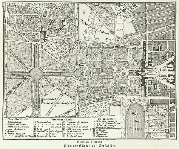 ![]() Вид на парк Версаля с высоты птичьего полета. XIX век. | |