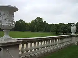 Как и дворец сад богат произведениями искусства. Одним из наиболее известных является Ваза Ватерлоо или Великая урна, заказанная Наполеоном в ознаменование его ожидаемой победы. После того, как работа над вазой была завершена скульптором Ричардом Уэстмакоттом, предполагаемое место её установки в Виндзорском замке было признано негодным для слишком громоздкой (высота — 15 метров, ширина — 4,6 метра и вес — 15 тонн) скульптуры. Лондонская национальная галерея, которой Великая урна была презентована, вернула её в 1906 году Эдуарду VII . Король Эдуард позже решил проблему, поместив Вазу туда, где она сейчас находится.[3]