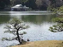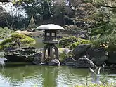 Сад расположен вокруг огромного пруда, который украшают три больших острова и чайный домик. Прогулочная дорожка живописно петляет вдоль берега, фактически, только узкая полоса деревьев, растущих по периметру пруда, отделяет сад от шумной улицы Киёсуми-дори[2]. В пруду живут карпы, несколько видов черепах и множество птиц: утки, цапли, чайки, прилетающие с расположенной неподалёку реки Сумида.