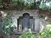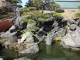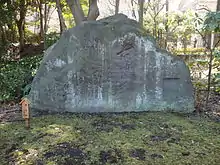 На одном из камней вырезан знаменитый хайку Мацуо Басё «Старый пруд»: