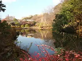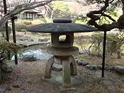 Сад частично расположен на склоне холма, на котором находятся дорожки и смотровые площадки, а также источник, питающий расположенные ниже пруды. В прудах плавают красные карпы. Сад украшают каменные фонари и пагода, бамбуковые изгороди. Здание у входа было построено в эпоху Тайсё и служило местом обучения членов семьи Хосокава.