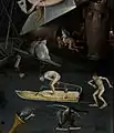 Странное существо с птичьей головой и большим полупрозрачным пузырём поглощает грешников и затем низвергает их тела в идеально-круглую выгребную яму. Туда же скупец осужден вечно испражняться золотыми монетами, а другой, судя по всему, обжора — безостановочно изрыгать съеденные лакомства. Мотив демона или дьявола, сидящего на высоком стуле, заимствован из текста «Видение Тундала», У подножия престола сатаны, рядом с адским пламенем, обнажённую женщину с жабой на груди обнимает чёрный демон с ослиными ушами. Лицо женщины отражается в зеркале, прикреплённом к ягодицам другого, зелёного демона, — таково возмездие тем, кто поддался греху гордыни.