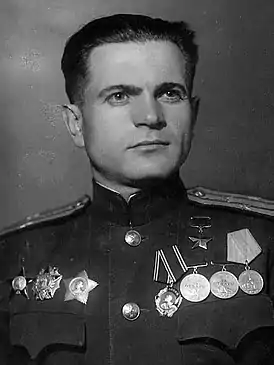 За образцовое выполнение боевых заданий командования на фронте борьбы с немецкими захватчиками и проявленные при этом отвагу и геройство указом Президиума Верховного Совета СССР ему было присвоено звание Героя Советского Союза с вручением ордена Ленина и медали «Золотая Звезда» № 7201.