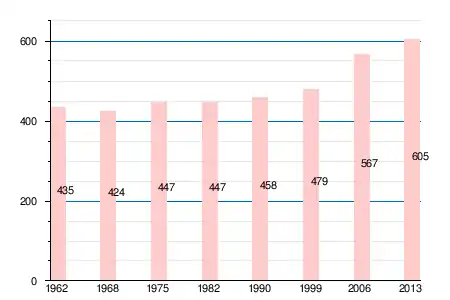 Население коммуны в 2011 году составляло 602 человека[6], в 2012 году — 603 человека[7], а в 2013-м — 605 человек[5].