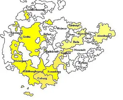 - после угасания линии Саксен-Эйзенах в 1645 году добавилась половина владений Саксен-Эйзенаха,