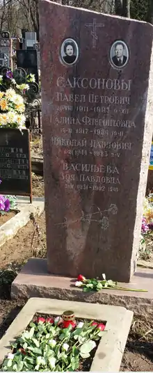Захоронен Саксонов П. П. в Москве на Митинском кладбище.