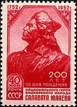 Салава́т Юла́ев (башк. Салауат Юлай улы; 1754 год[* 1], Текеево, Шайтан-Кудеевская волость, Оренбургская губерния — 26 сентября (8 октября) 1800, Балтийский Порт) — башкирский национальный герой (батыр) и поэт-сказитель (сэсэн)[* 2]. Участник Крестьянской войны 1773—1775 годов, сподвижник Емельяна Пугачёва[3].