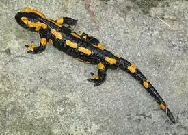 - Salamandra salamandra (Linnaeus, 1758) — Огненная саламандра, или пятнистая саламандра, или обыкновенная саламандра