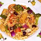 Используемые ингредиенты широко варьируются в зависимости от региона, ресторана, сезонной доступности и предпочтений кулинара. Салат может быть простым, как холодные макароны, смешанные с майонезом и каким-то овощем, или сложным, как несколько видов пасты (макаронных изделий), смешанных с уксусом и различными свежими, консервированными или приготовленными ингредиентами. Могут быть использованы дополнительные виды пасты, такие как диталини. [3] Среди ингредиентов наиболее часто встречаются овощи, бобовые , сыры, орехи, травы, специи, мясо, птица или морепродукты. [4] Брокколи, морковь, кукуруза , огурцы, оливки, лук, фасоль, горох , сыры пармезан или фета — эти популярные ингредиенты, которые обычно можно найти в североамериканских салат-барах.