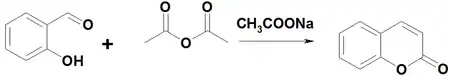 При взаимодействии с уксусным ангидридом в присутствии ацетата натрия образует кумарин:
