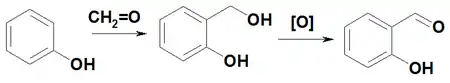 - Салициловый альдегид может быть получен из фенола и хлороформа в присутствии щелочи. Этот процесс называется реакцией Раймера-Тимана.