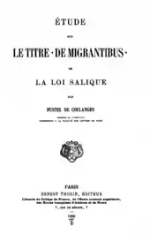 - Фюстель де Куланж Н. Д. История общественного строя древней Франции / Пер. с фр. О. П. Захарьиной. — СПб.: Типо-литография Альтшулера, 1907. — Т. 3. — 814 с.