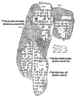 Согласно «Ассирийскому царскому списку», Салманасар II правил 12 лет[1]. Следующим правителем Ассирии стал его сын Ашшур-нирари IV.