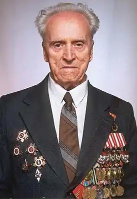 - Награждён в соответствии с Указом Президиума Верховного Совета СССР от 04.06.1944 "О награждении орденами и медалями за выслугу лет в Красной Армии"
