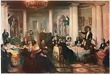 Салон — литературный, художественный или политический кружок избранных лиц, собирающихся в частном доме. Наиболее прославленные салоны — французские, группировавшиеся вокруг какой-либо выдающейся женщины, т. н. «царицы салона», которая, как правило, отличалась остроумием, талантом или красотой[1]. Обычно собирались в её доме. Первые салоны относятся к XVI в. (салоны Маргариты Наваррской, Марии Шотландской, Маргариты Валуа (королевы Марго). В XVII веке известностью пользовался салон придворного художника-портретиста Даниеля Дюмустье.