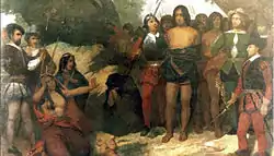 | 2195 | ![]() | Раймон Монвуазен «Caupolican, chef des Araucaniens, prisonnier des espagnols» Холст, масло, 300 × 410 см |