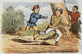 Например, если преследуемый неожиданно (такие вещи убегающий будет делать намеренно) поскачет на одной ноге, то и водящий должен скакать за ним на одной ноге.