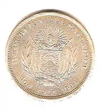 В 1877 году выпущены первые бумажные деньги Сальвадора — банкноты правительства в песо. В 1892 году открыт монетный двор, начавший в том же году чеканку монет в песо и сентаво.