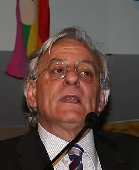 ![]() Сенатор Чезаре Сальви выступает 12 мая 2007 года на национальном конгрессе организации Arcigay в Милане. Photo: Giovanni Dall'Orto. | |