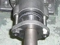 Суть сальникового устройства в том, что на внешней стороне крышки или корпуса в том месте, где через них проходит шток или шпиндель, создаётся сальниковая камера (иногда её называют сальниковая коробка[2]), в которую укладывается уплотнительный материал — сальниковая набивка. При помощи специальных устройств набивка поджимается вдоль оси шпинделя (штока), упираясь в стенки сальниковой камеры и уплотняя набивку. При сжатии набивки в ней создаются усилия, под действием которых она прижимается с одной стороны к стенке сальниковой камеры, а с другой — к цилиндрической поверхности шпинделя (штока). Таким образом создаётся герметичность и рабочая среда не проникает за пределы корпуса оборудования. В механизмах малых диаметров поджатие набивки производится накидной гайкой, больших — специальной деталью — сальником[3] — при помощи откидных или анкерных болтов с гайками (обычно двух)[4].