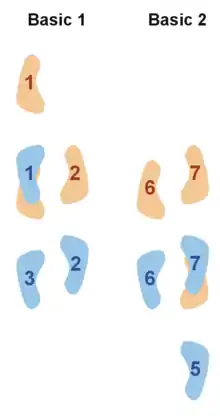 Базовый шаг начинается только на первую или вторую, шаги и движения выполняются, используя в качестве основы акцентов перкуссионных инструментов. Геометрический рисунок танца — круговой (центром круга является центр между партнёром и партнёршей), однако иногда встречаются линейные компоненты — в основном это заимствования из Сона и Румбы.
