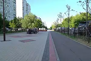 ![]() На углу Самаркандского бульвара и Ферганской улицы. Слева — школа искусств имени Балакирева | |