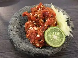Традиционно свежий самбал изготавливают вручную в каменной ступке с пестиком.