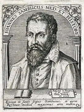 Иоганн Самбук (лат. Johannes Sambucus)[4] , или Янош Жамбоки (венг. János Sámboki или Zsámboky; 1531—1584), — венгерский гуманист, врач, картограф, философ, филолог-латинист[5] и поэт; советник и историограф императоров Максимилиана II (в 1564—1576 гг.) и Рудольфа II[4]. Его называли венгерским «полигистором»[5] (универсалом).