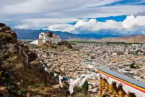 Примечателен также дзонг — городская крепость. В 1959 году после антикитайского восстания крепость была разрушена. Во времена, когда Шигадзе был столицей Тибета, здесь находилась королевская резиденция. В конце 2000-х годов на месте разрушенной крепости построена её копия (фотографии в разные годы[3]).