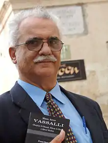 ![]() Франс Саммут держит в руке свой перевод собрания мальтийских пословиц Вассалли. | |