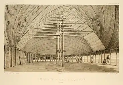 Общинный дом изнутри, видны переплетённые столбы