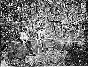 - Английский — moonshine (лунное сияние) (только в США). Впрочем, так называли не только нелегально произведённый в США напиток, но и нелегально ввезённый из Канады или Мексики любой алкогольный напиток, в том числе и вино.