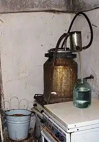 Какими бы ни были аппараты с периодической нагрузкой по конструкции, все они требуют опорожнения перегонного куба по окончании одного цикла работы. Простейшие аппараты состоят только из перегонного куба, в котором происходит кипение браги и холодильника, в котором производится конденсация паров. Подобные аппараты, несмотря на свою простоту, могут обладать значительной производительностью (до 3 литров дистиллята крепостью 20 — 40 % об. в час при однократной перегонке), однако приготовление высококачественного алкоголя с помощью простейших аппаратов в домашних условиях может быть затруднительным. Чтобы повысить качество приготовляемых напитков, можно применить дополнительные приспособления к самогонному аппарату.