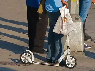 Самокат — средство передвижения, приводимое в движение путём отталкивания ногой от земли в положении стоя. Самокат используется не только в качестве персонального транспорта, но и для досуга, занятия спортом и физкультурой. Существуют несколько типов самокатов, отличающихся различными параметрами, но принцип движения остаётся неизменным. Изначально так называли велосипед[1].