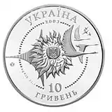 На аверсе: в круге из бусин — изображение малого государственного герба Украины в окружении аллегорической композиции из Солнца, стилизованного крыла, птиц и звёзд. Логотип Монетного двора НБУ, надписи «УКРАЇНА 2003 10 ГРИВЕНЬ», обозначение металла, его пробы и веса чистого серебра «Ag 925 31,1». На реверсе: самолёт Ан-2, логотип «АН», надписи «ЛІТАКИ УКРАЇНИ АН-2 AN-2». |