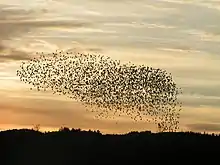 Самоорганизация в биологии[26] может наблюдаться в спонтанном фолдинге белка и других биомакромолекул, образовании липидных бислойных мембран, формировании паттернов и морфогенезе в биологии развития, координации движений человека, социальном поведении насекомых (пчел, муравьев, термитов)[27] и млекопитающих, а также стайном поведении птиц и рыб[28].