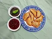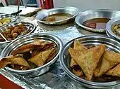 Самоса (от перс. سنبوساگ; sanbosag[1]) — жареное или печёное тесто с начинкой (пряный картофель, лук, горох, чечевица, мясо, курица). Размер и форма различны, но наиболее распространённая в виде треугольника. Часто подаётся с соусами. Самоса популярна на индийском субконтиненте, на юго-востоке, в Центральной и Юго-Западной Азии, на Аравийском полуострове, на Средиземноморском побережье, в северной и южной частях Африки.
