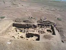 - Крепость. Вероятность наличия на городище крепости, построенной из обожжённого кирпича, поднимает статус города и связывает его с царской властью, поскольку кирпичное строительство в каганате являлось царской монополией[20].