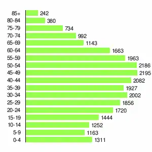 | Жителей | 4703 | 7447 | 10630 | 14588 | 18989 | 24594 | 26096 | 26507 | 26255 |