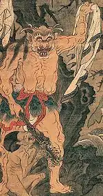 Также у истока реки Сандзу, взявшись за руки, бродит пара супругов-привидений. Оба вечных спутника, длинноволосые и без ног, а у призрака-мужчины растёт тонкая синяя борода. Одеты они в белые одеяния мертвых и носят на головах белые треугольные шапочки. Будучи на грани шести миров, они будто бы направляются в Дзигоку.