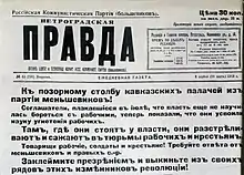 «Ленинградская правда», которая до 30 января 1924 года называлась «Петроградская правда»[14], стала выходить в конце марта 1918 года, отделившись от газеты «Правда» после перевода её в Москву[14]. Становление новой газеты происходило постепенно: сначала под заголовком «Правда», начиная с номера 54 от 8 (21) марта 1918 года появилось набранное мелким шрифтом слово «петроградская». Через 10 дней, 20 марта (2 апреля) 1918 года в № 64 (290) это слово появляется уже над заголовком и поэтому выпуск № 64 считается первым номером «Петроградской правды»[15].