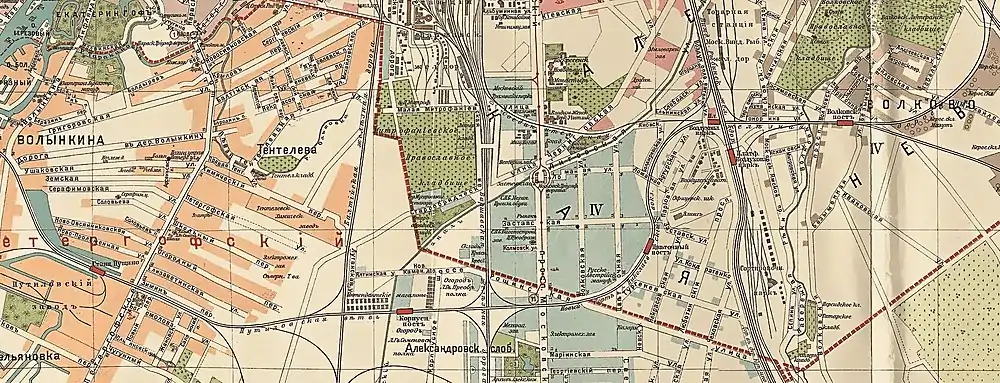- См. План Петрограда с ближайшими окрестностями. 1916. Масштаб 1:21000. Приложение к адресной и справочной книге «Весь Петроград». Издание Т-ва «А. С. Суворина — Новое время». — Квадраты Н5—Н11.